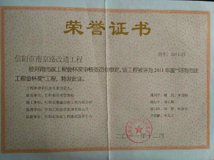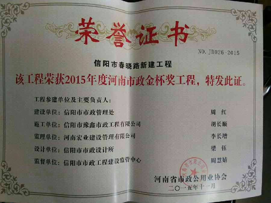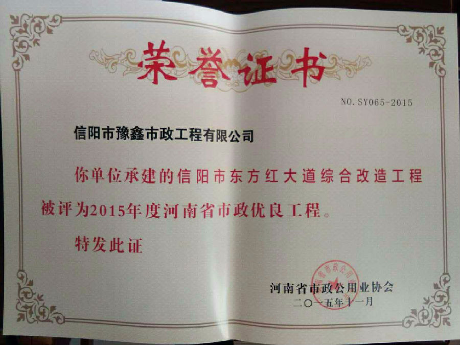 好風憑借力,送我上青云。近年來,公司積極參與城市市政基礎(chǔ)設(shè)施建設(shè)施工,積極參與市場競爭,先后承擔施工了市政府重點工程南京路道路改造工程、春曉路道路改造工程,東方紅大道道路改造工程、龍江東路新建工程等重點民生工程,其中南京路道路改造工程被省建設(shè)廳評為“中州杯”, 春曉路和東方紅大道道路改造工程被省建設(shè)廳評為“省優(yōu)工程”,成為城區(qū)一道道亮麗的風景線。參與施工了市典范小區(qū)“臺北城上城”、“恒大名都”以及師范學院、職業(yè)技術(shù)學院、交警支隊和軍區(qū)道路工程,參與施工了雞公山管理區(qū)、南灣管理區(qū)、明港鎮(zhèn)和羅山縣等部分道路小區(qū)工程施工,累計大小各類施工工程三百余項,企業(yè)影響力不斷擴大、輻射力不斷增強,市場份額不斷提高,企業(yè)信譽不斷彰顯,為信陽城市建設(shè)做出了積極貢獻,為企業(yè)的可持續(xù)發(fā)展插上了騰飛的翅膀。
